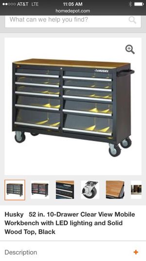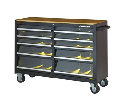 Husky 52 In 10 Drawer Clear View Mobile Workbench With Led