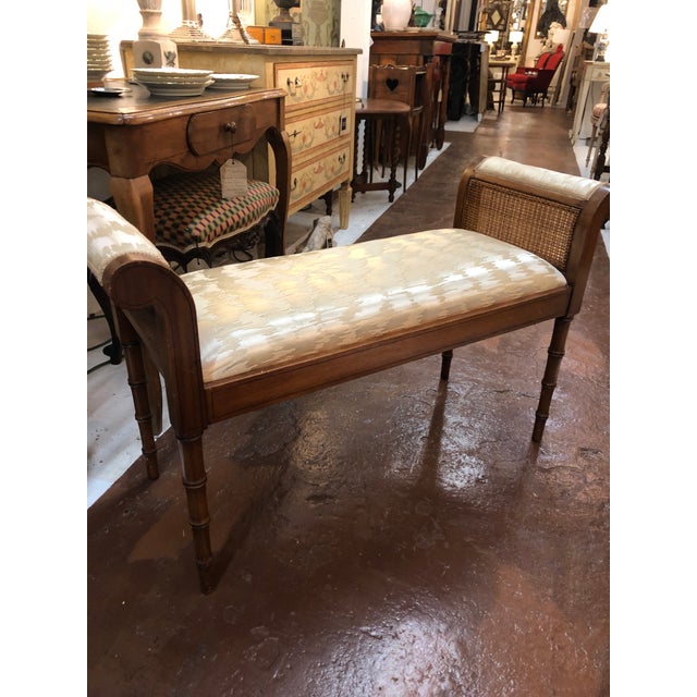 Baker Stool Bench Ottoman Vintage 60s 70s Woven Caning Wood Brass