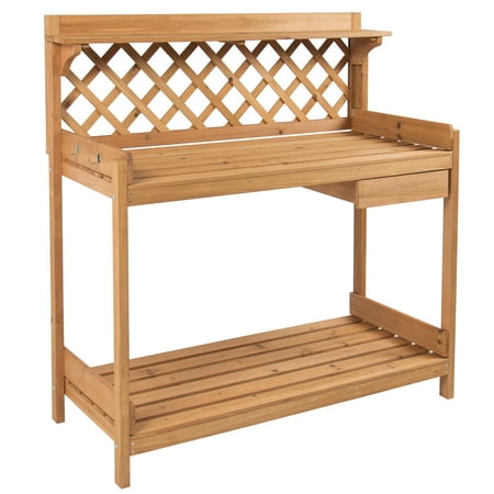 Best Choice Products Fir Wood Potting Bench With Hooks Natural