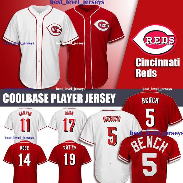 2019 Reds Jersey 5 Johnny Bench Jersey 11 Barry Larkin Jersey 19