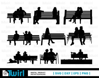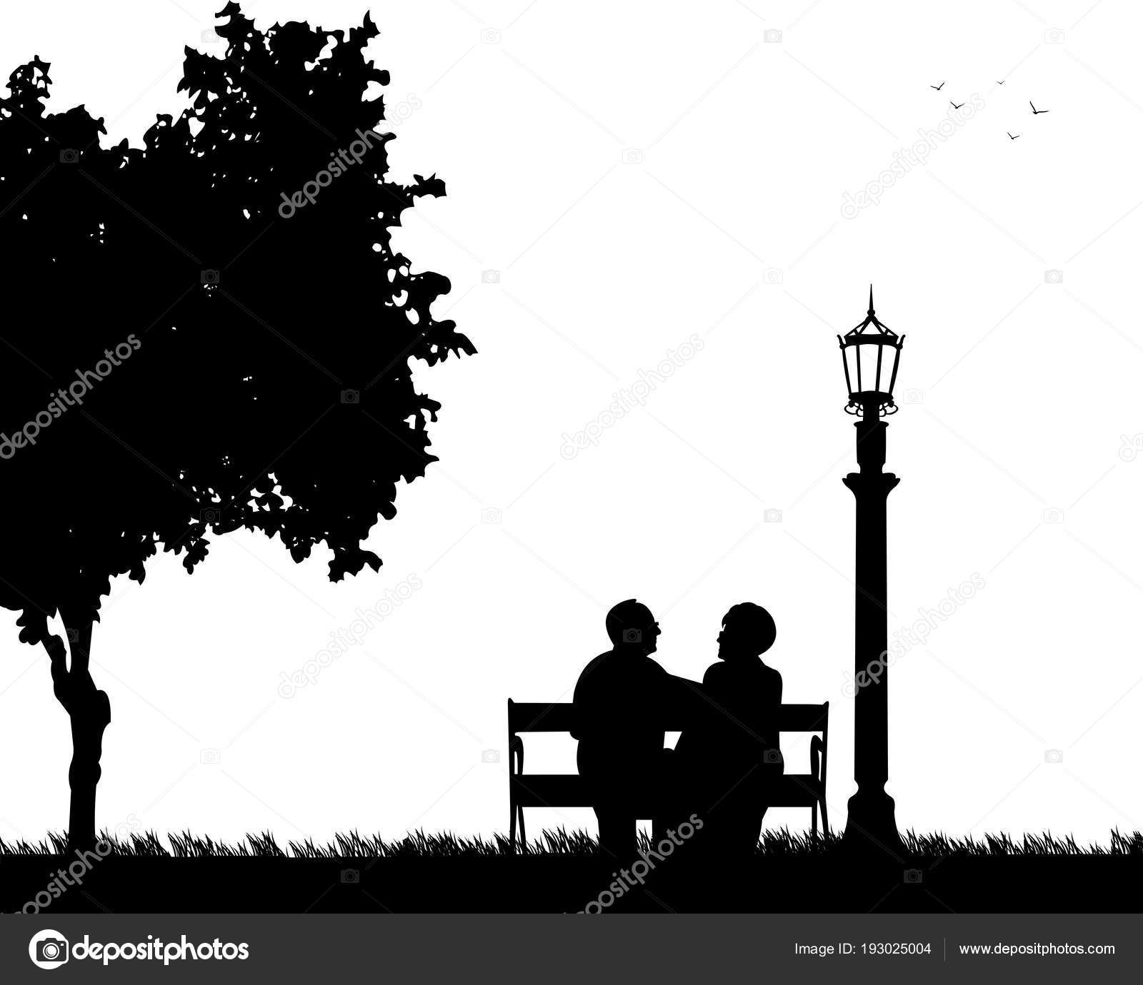 Couple Park Bench Silhouette Illustrations Royalty Free Vector