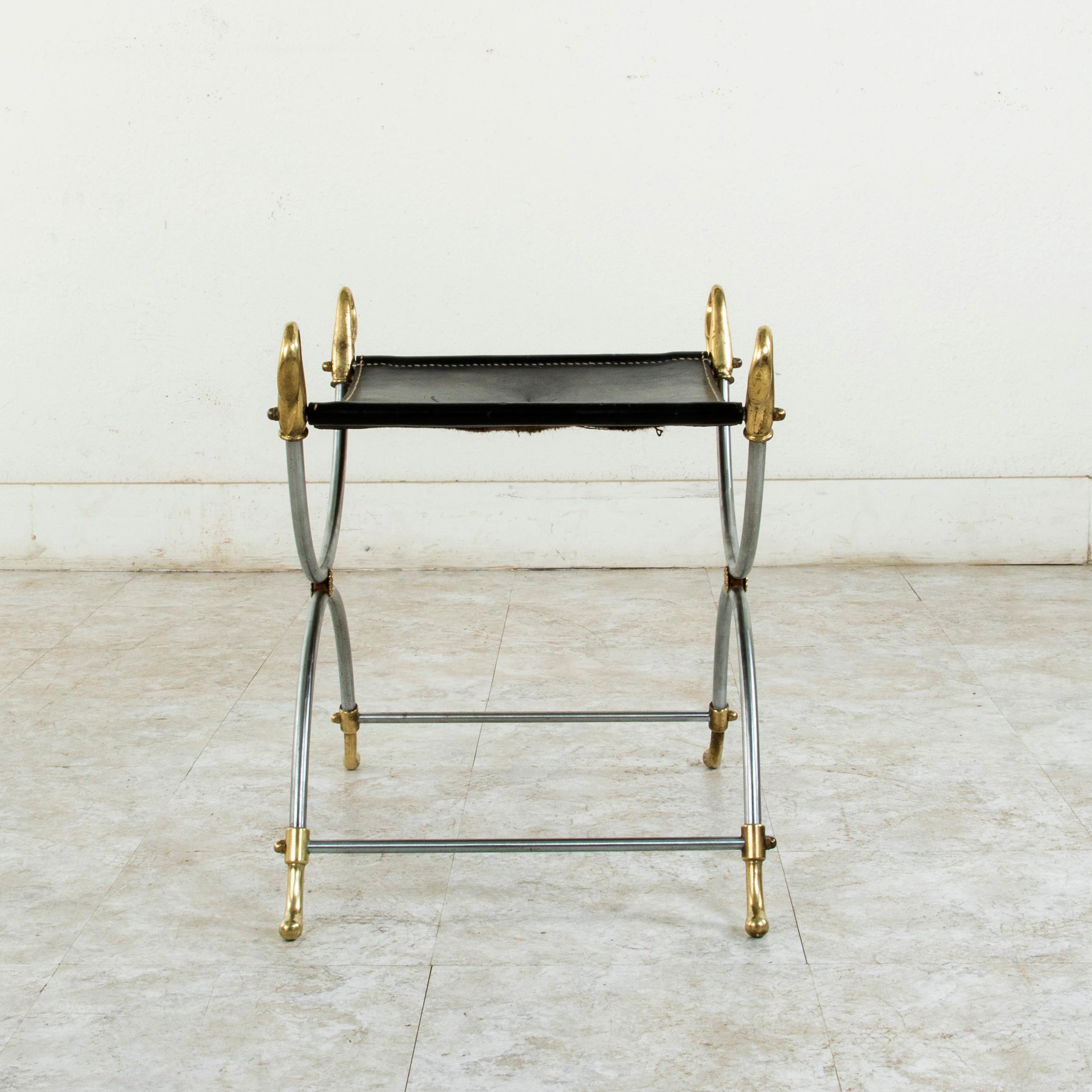 Midcentury French Steel Bronze And Leather Maison Jansen