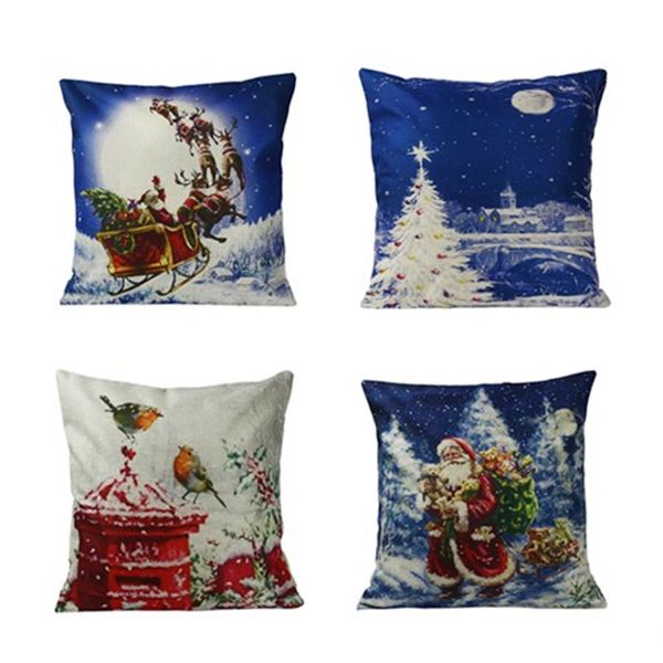 Santa Pattern Pillow Linen Cotton Square Pillow Cover 43cm 43c