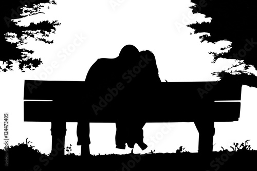 Silhouette Of Boy And Girl Sitting On A Bench Buy This Stock