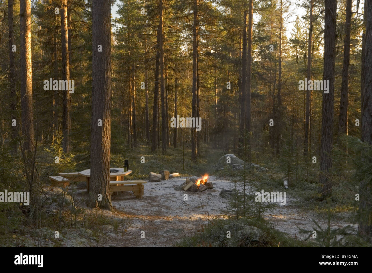 Sweden Muddus National Park Forest Barbecue Place Hearth Stock