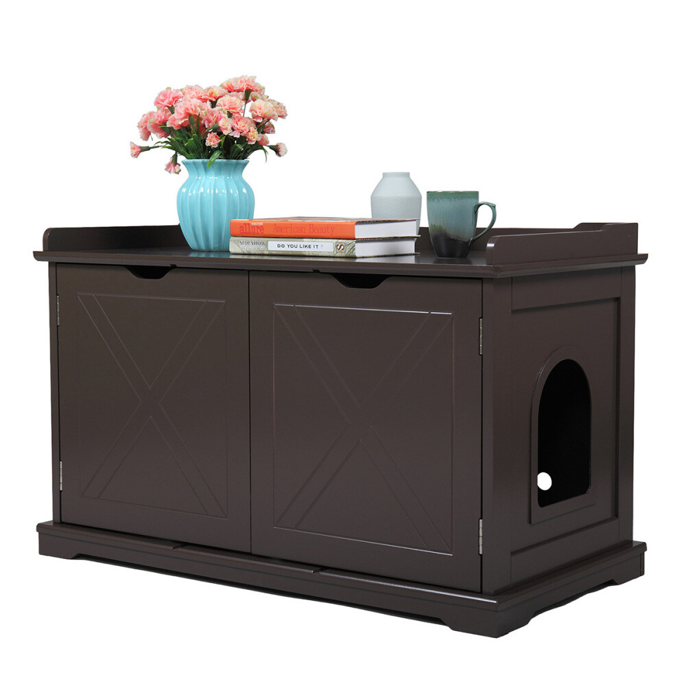 Cat Litter Box Wood Cabinet Bench Enclosure Hidden Toilet House