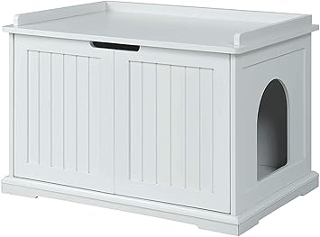 Cat Litter Box Bench Enclosure Furniture White Wood Wooden