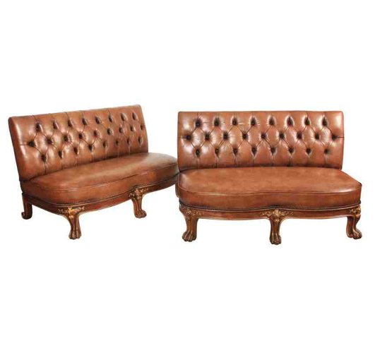 Leather Chesterfield Style Bench Sofas 1920s Set Of 2 For Sale