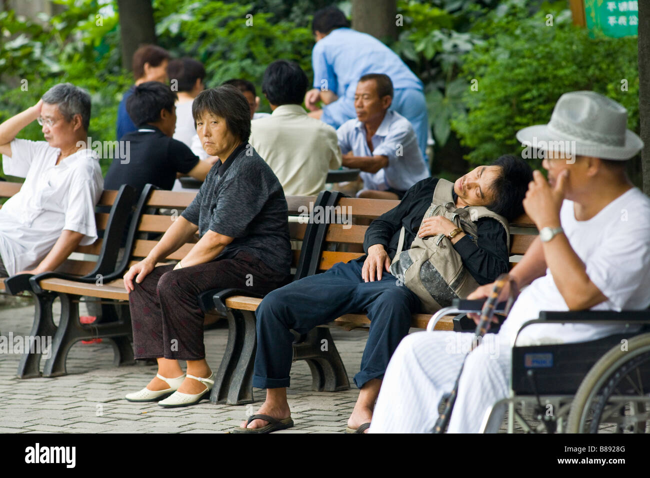 Chinese People Resting On The Afternoon On Park Benches Of Jing An
