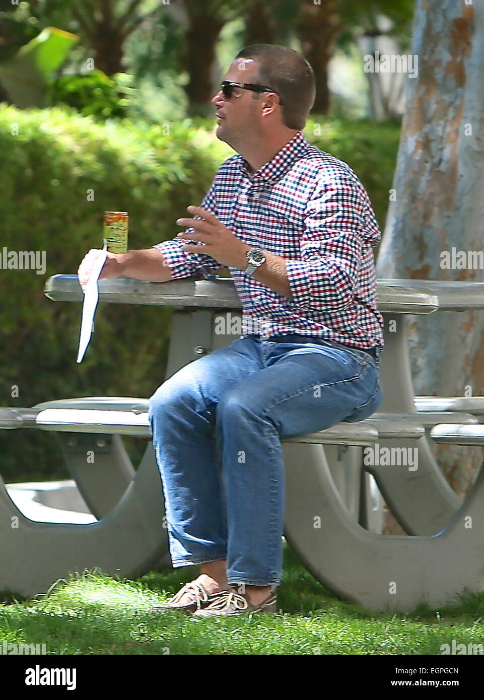 Chris O Donnell Sitting On A Park Bench In Los Angeles Featuring