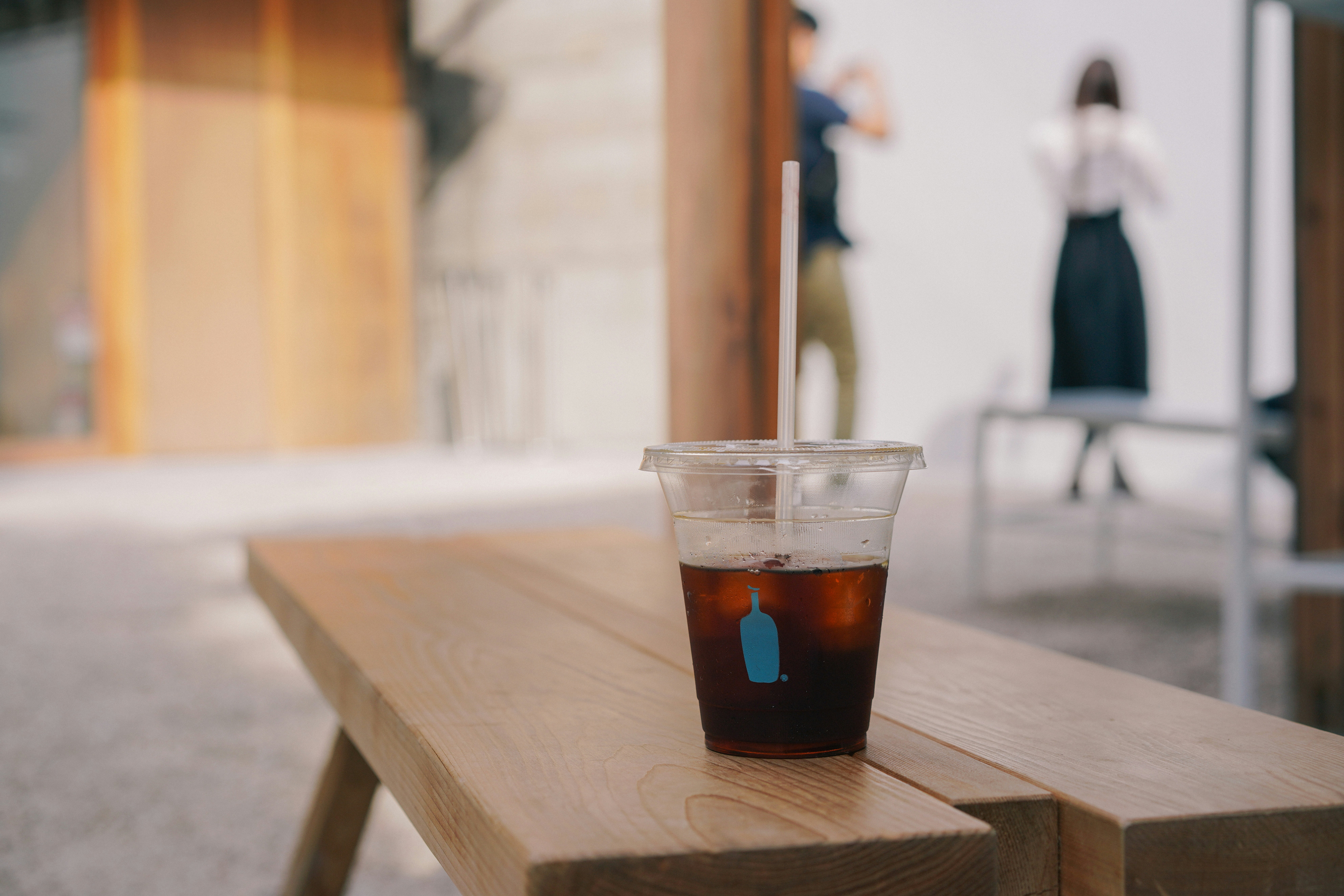 Clear Plastic Cup Half Empty On Wooden Bench Photo Free Wood