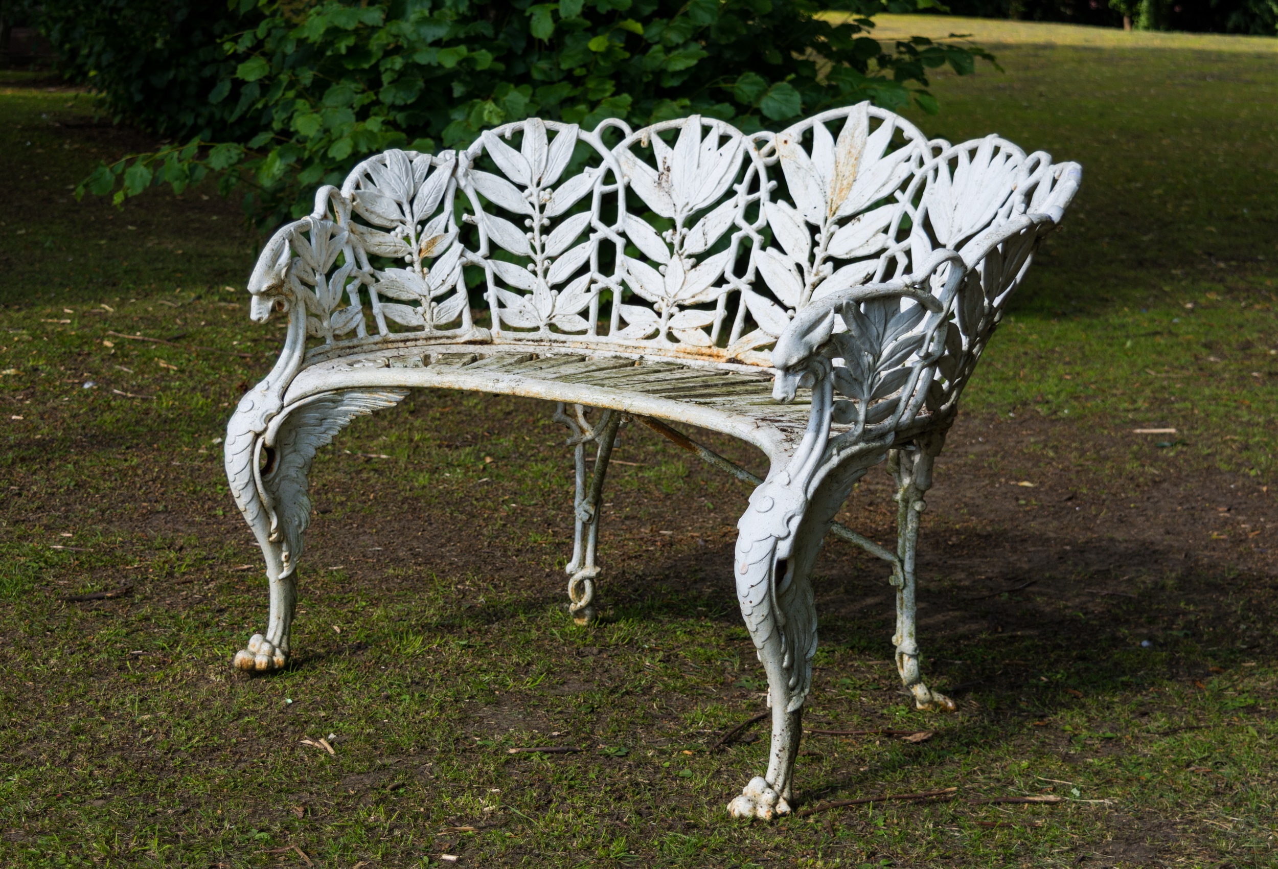 A Victorian White Painted Cast Iron Bench Rustic Pattern Probably