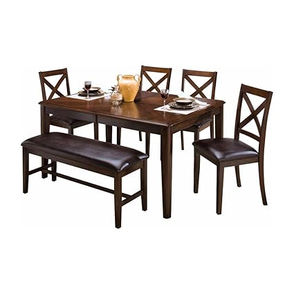 Find upholstered dining bench with back. Browse and see what weve collected. Esofastore dining room modern unique 6pc dining set chestnut finish dining table w corner cut cross back chairs and a bench plush seat.