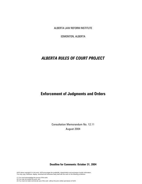 Alberta Rules Of Court Project Enforcement Of Judgments