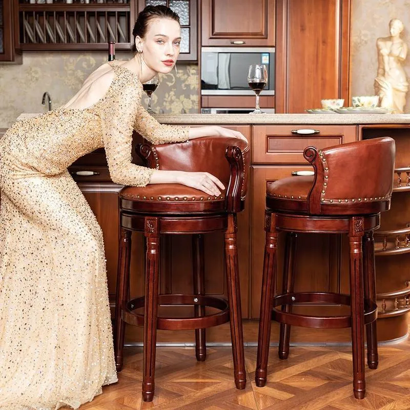 American Style Retro Decor Cowhide High Stool Bar Solid Wood Bar