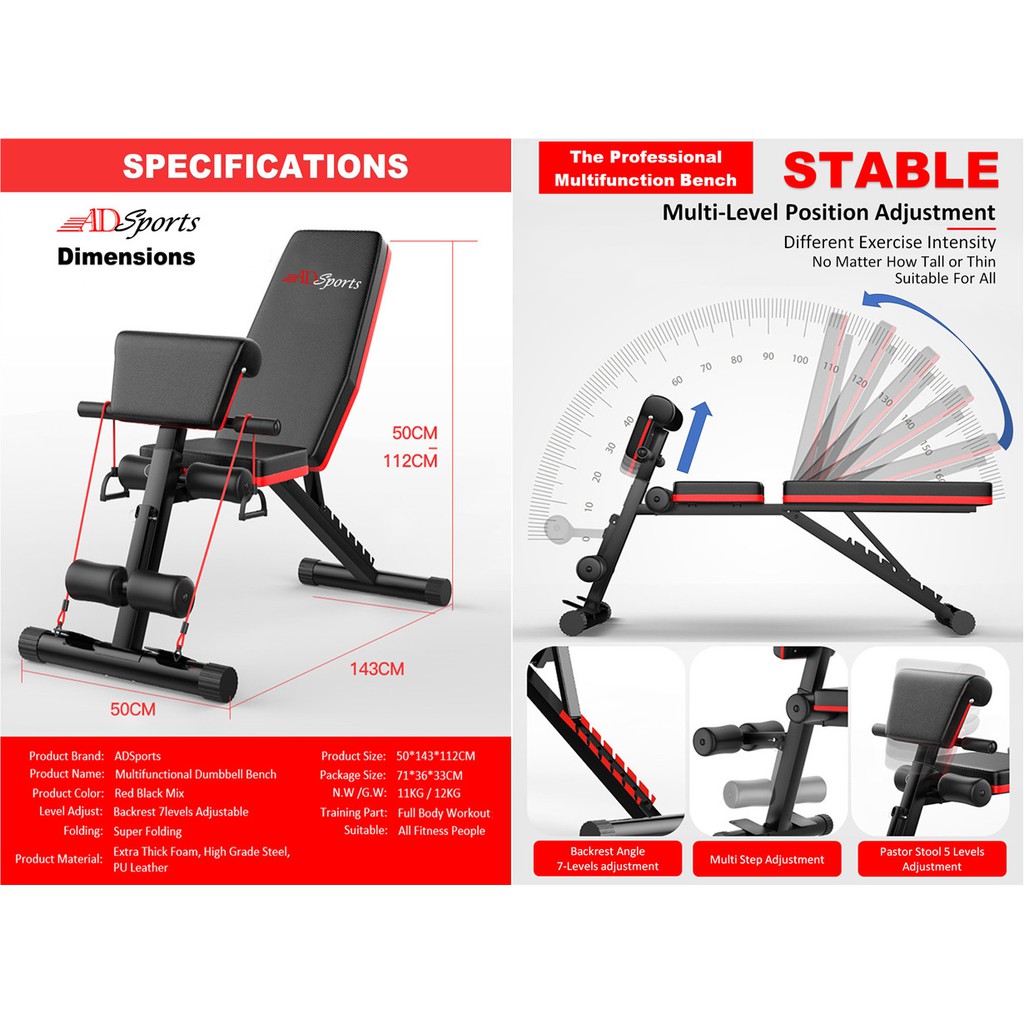 Adsports Ad600 All In 1 Adjustable Gym Weight Bench Foldable Sit