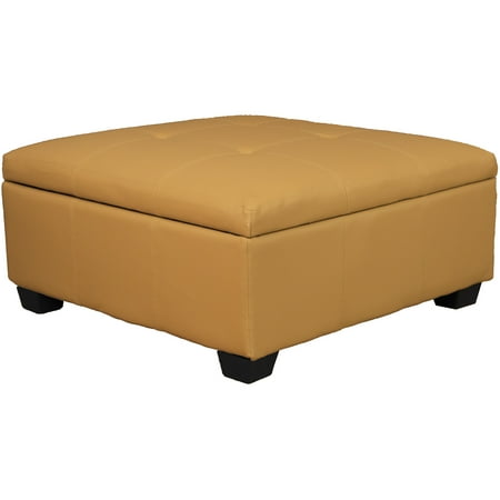 Timeless 36 Inch Large Square Tufted Padded Hinged Storage Ottoman