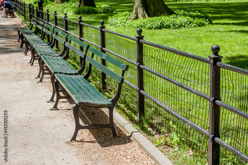 Row Of Empty Bench In Central Park New York City Usa Buy This