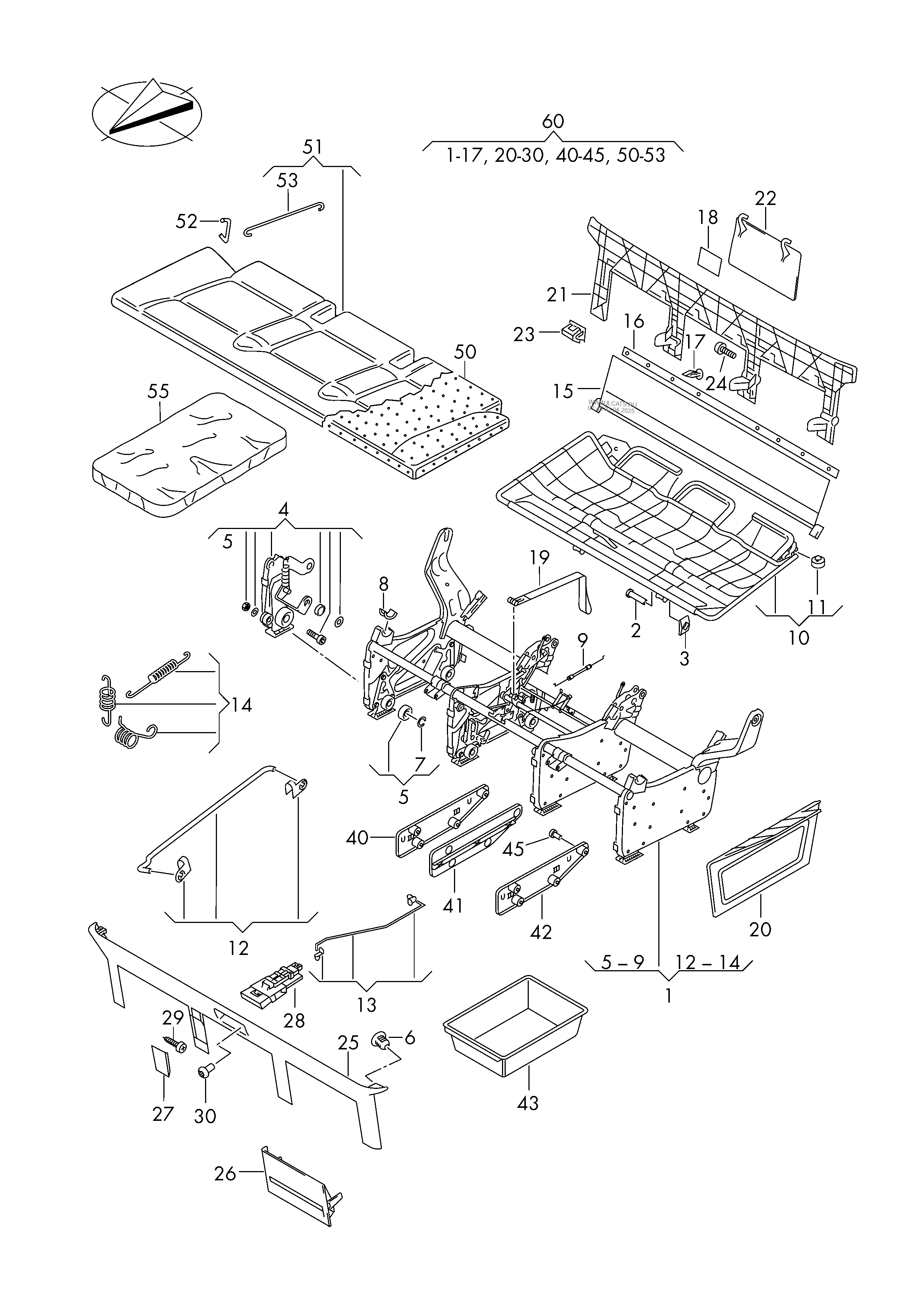 Seat Frame For Vehicles With 3 Seater Folding Rear Bench Seat Vw