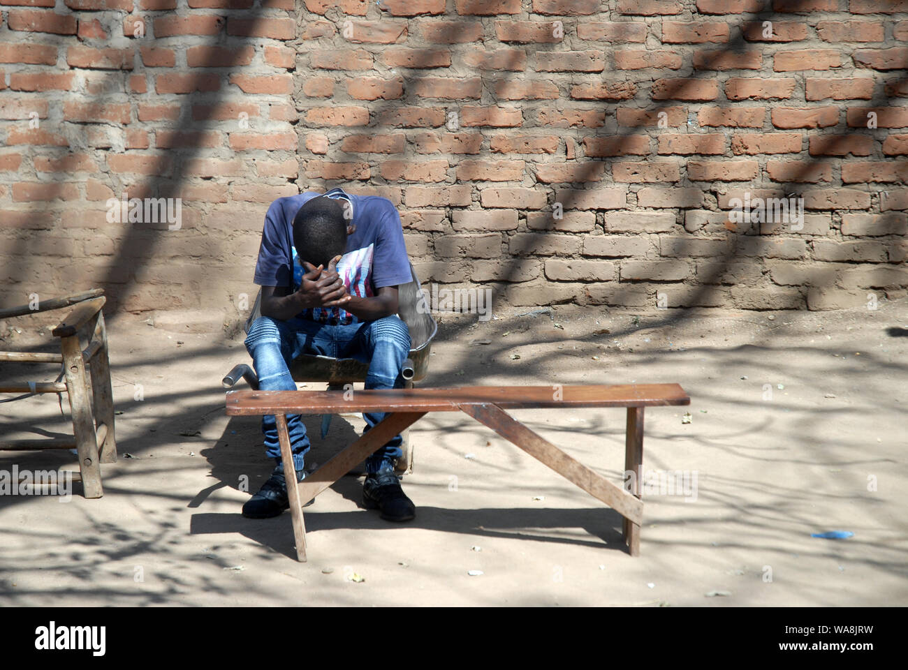 Man Sat On Wooden Bench Stock Photos Man Sat On Wooden Bench