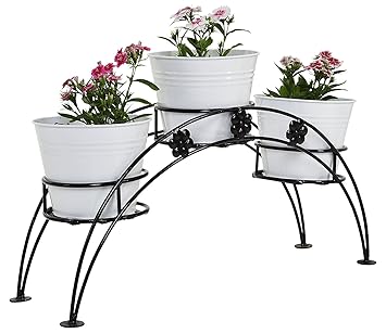 Green Gardenia Iron 3 Tier Pot Stand With Metal Planter White