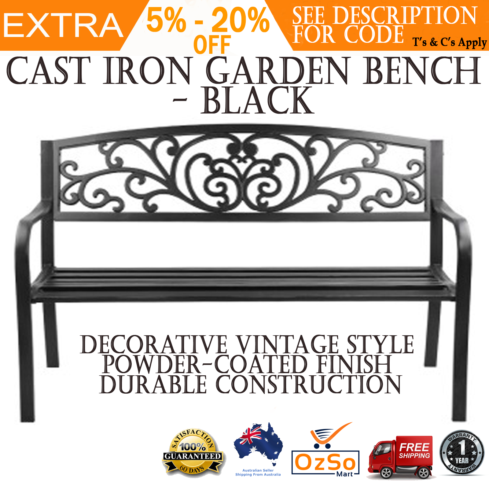 Outdoor Bench Vintage Cast Iron Black Garden Patio Park Chair
