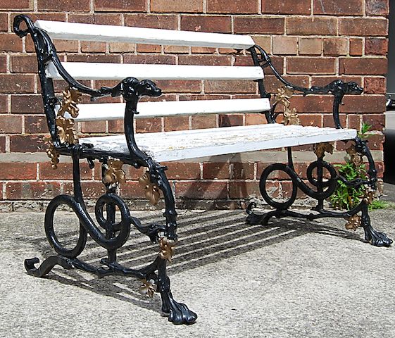 A Victorian Cast Iron Laurel Pattern Garden Bench By