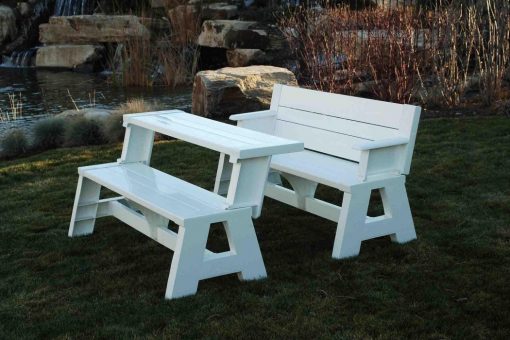 Convert A Bench White Wooden Outdoor Convertible Garden Table