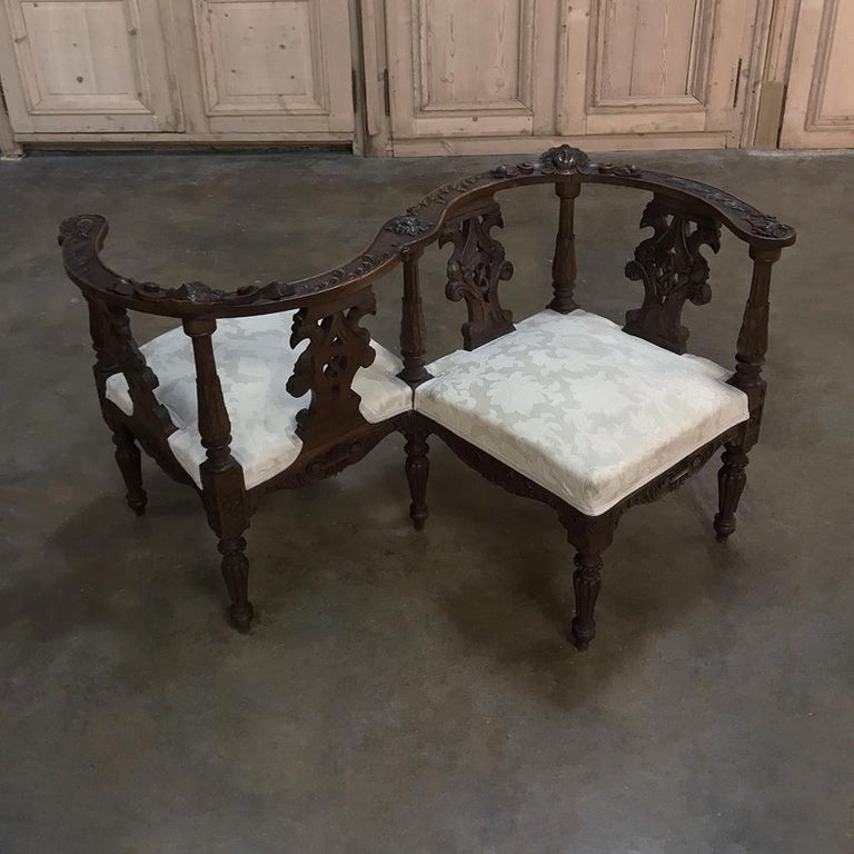 19th Century Italian Renaissance Walnut Courtship Chair For Sale