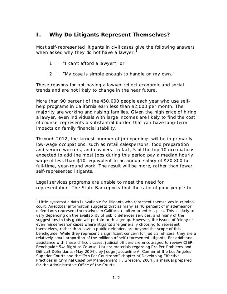 Handling Cases Involving Self Represented Litigants A Bench Guide F