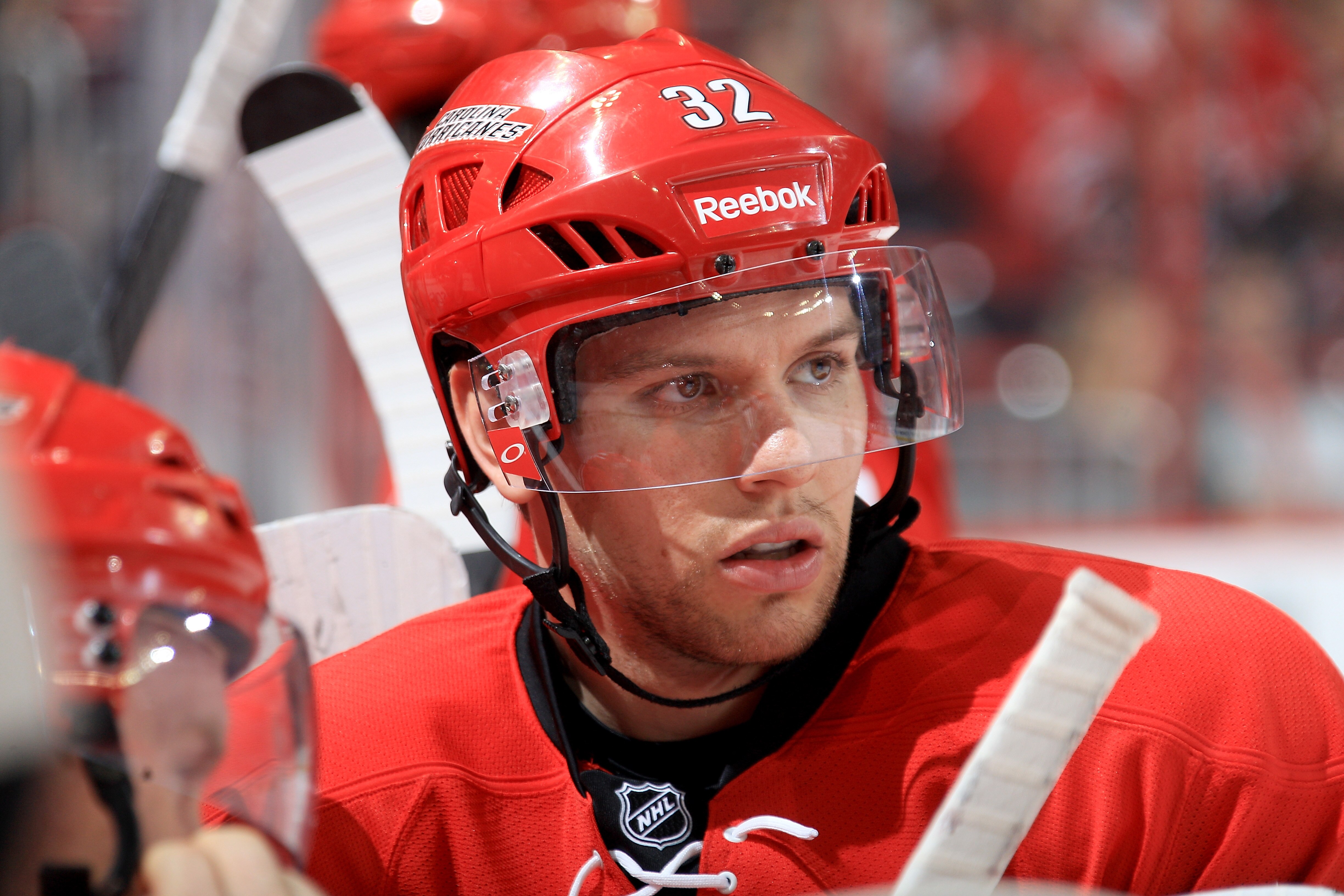 Zach Boychuk Of The Carolina Hurricanes Skates Back To The Bench