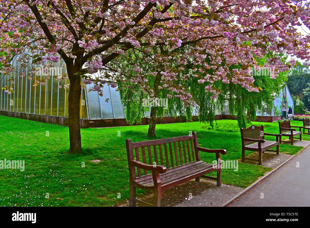 Park Benches Cherry Blossom Trees Stock Photos Park Benches
