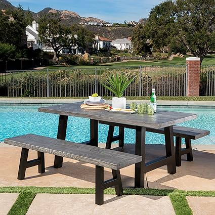 Contemporary Bench And Table Set Steel Patio Outdoor Soft