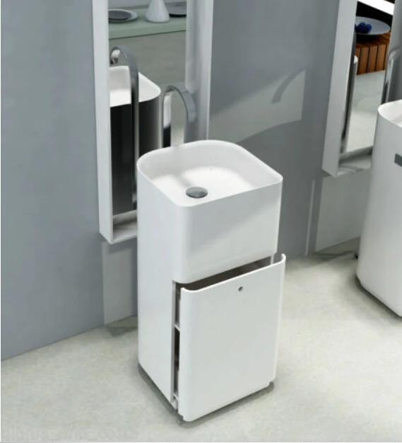 Corian Bathroom Free Standing Pedestal Solid Surface Basin Square