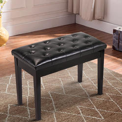 Ebony Black Leather Piano Bench Wood Double Duet Keyboard Seat