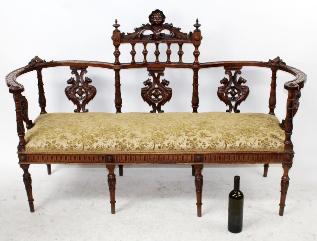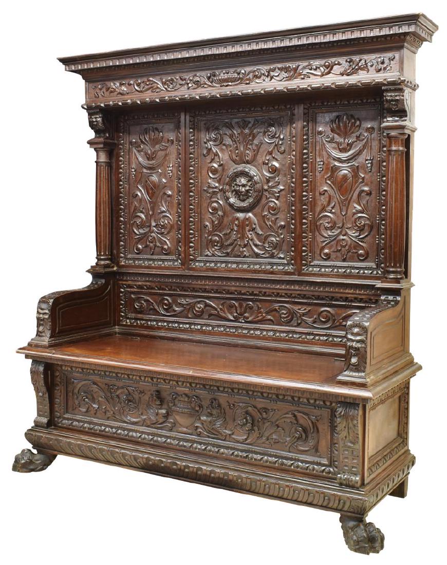 Italian Renaissance Revival Walnut Hall Bench Jun 23 2019