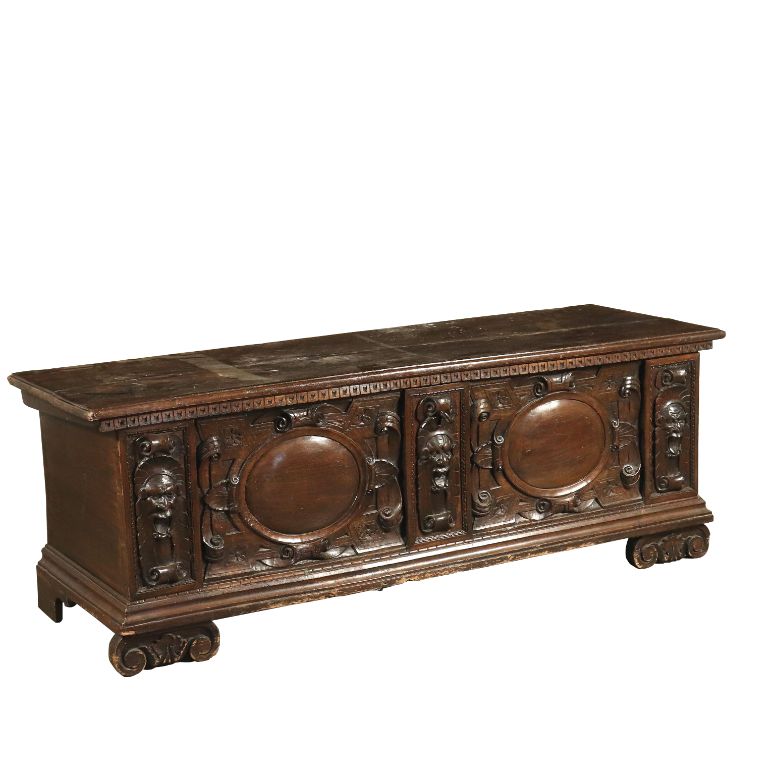 Walnut Carved Storage Bench Italy Mid 1800s Other Furniture
