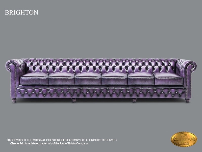 Chesterfield 6 Seat Brighton Sofa Antique Purple Leather
