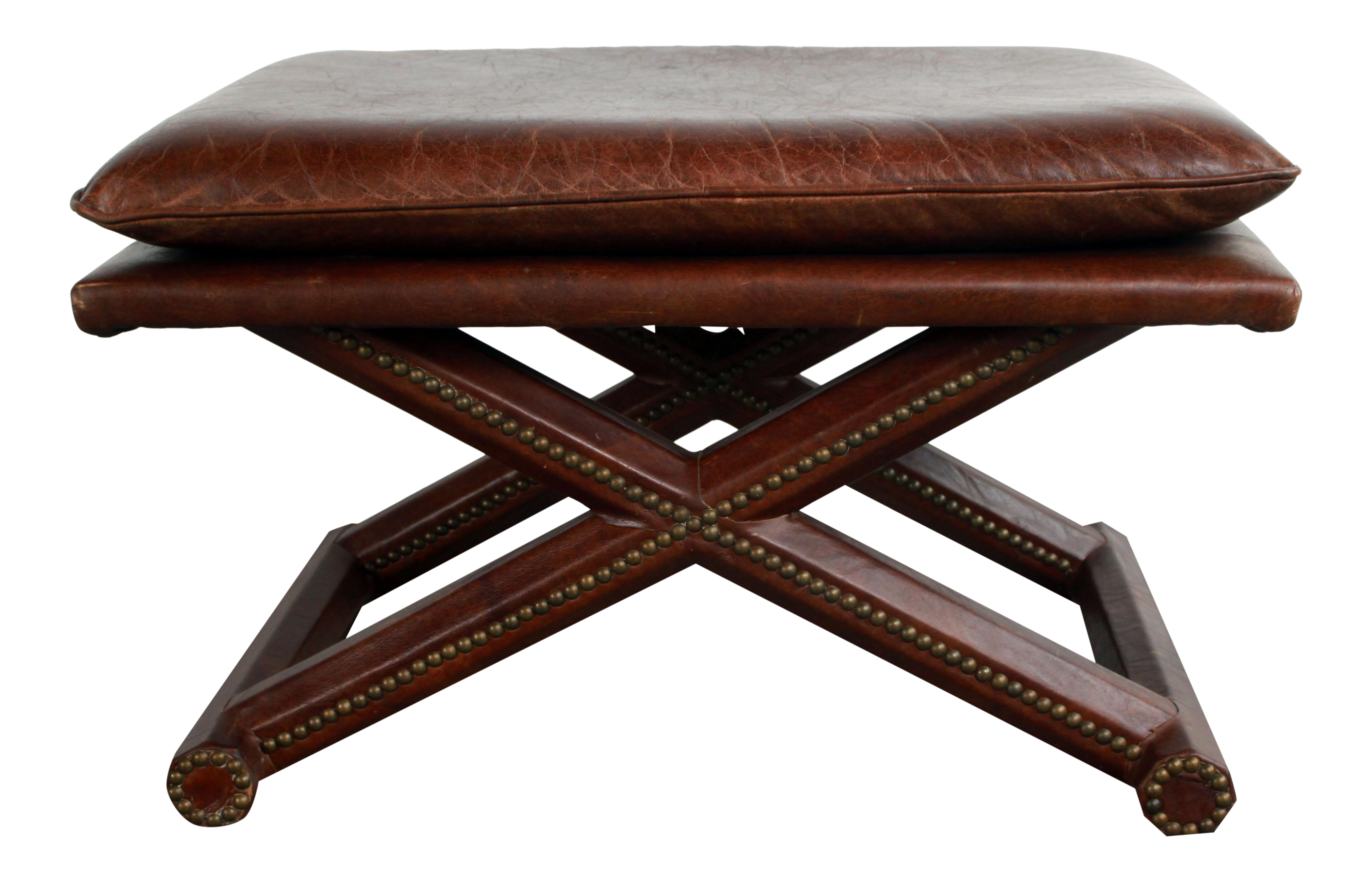 Brown Leather Crossed X Base Ottoman Bench Chairish