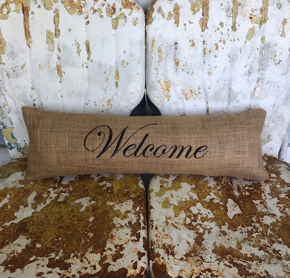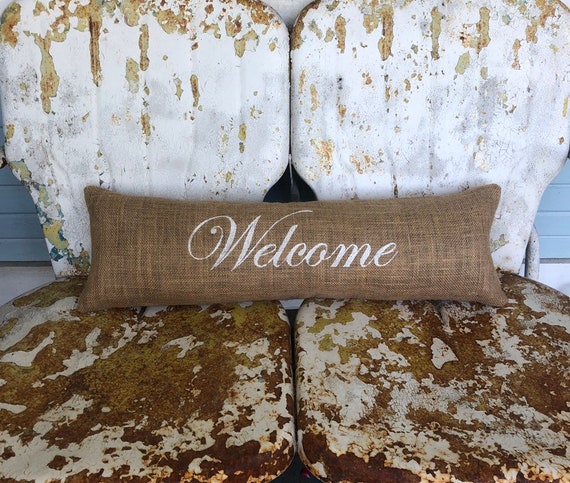 Welcome Long Narrow Bench Pillow Burlap Pillow Decorative Etsy
