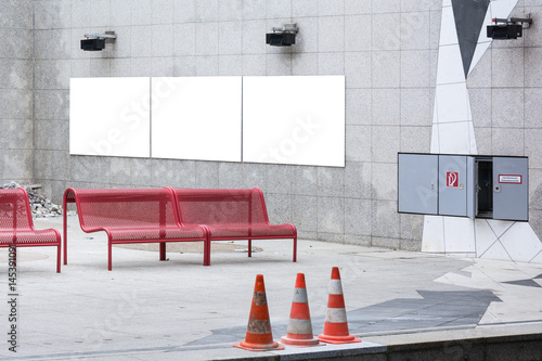 City Blank Ad Space Red Benches Subway Station Far Wall Buy This