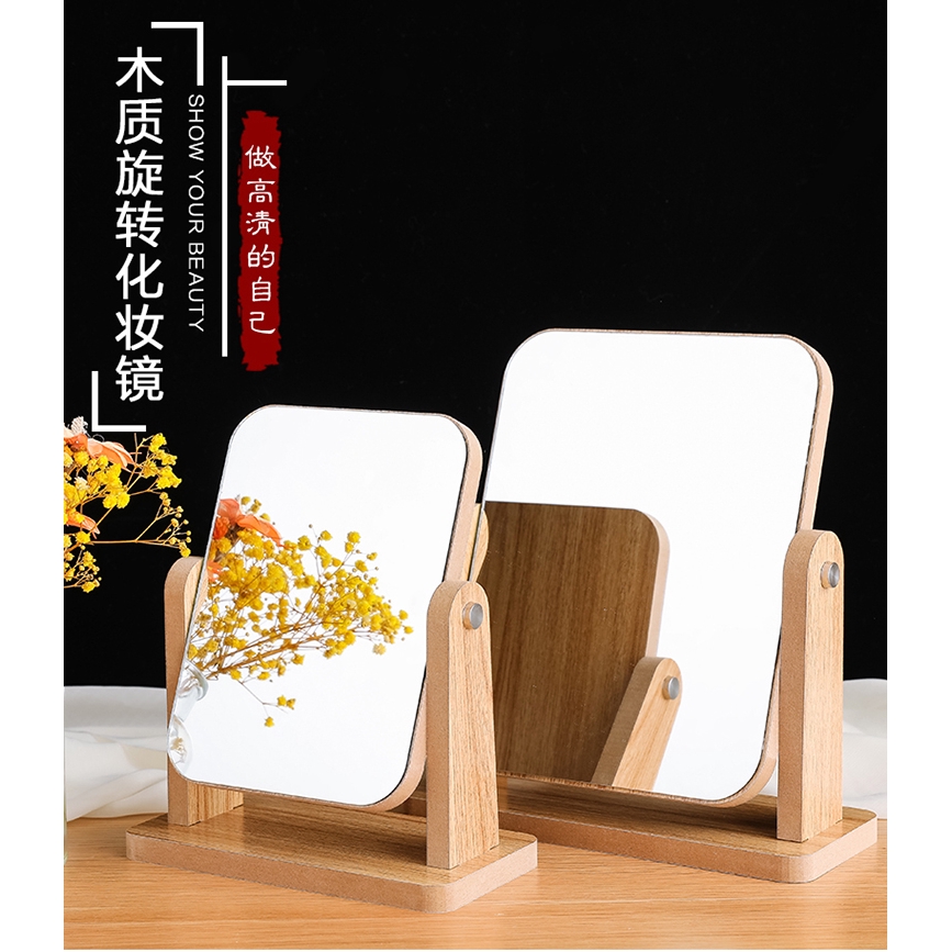 New Wooden Benchtop Makeup Mirror Rotating Hd Single Face Dressing