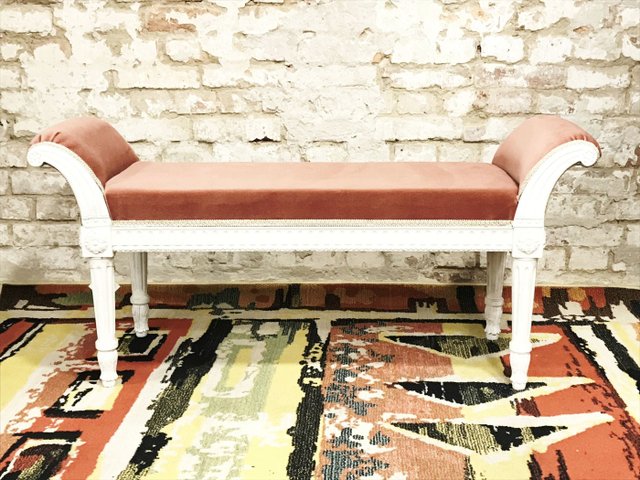 Lot Art Carved Wooden Bench Chest Arched Backrest With Bobeche