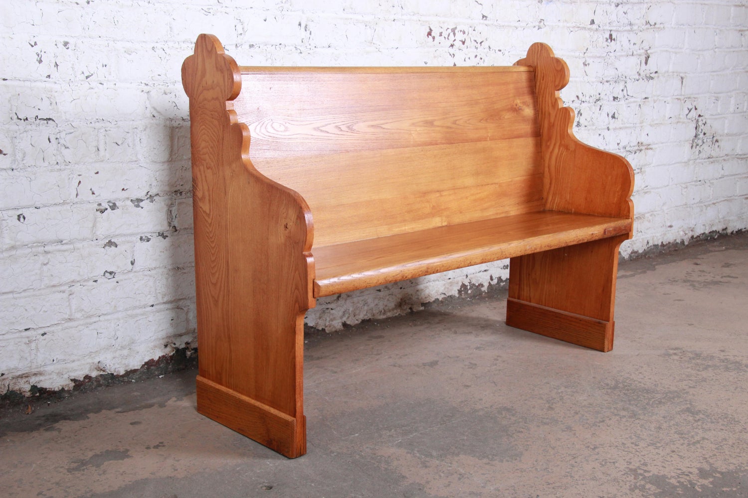 Vintage Solid Oak Gothic Cathedral Church Pew Or Bench For Sale At