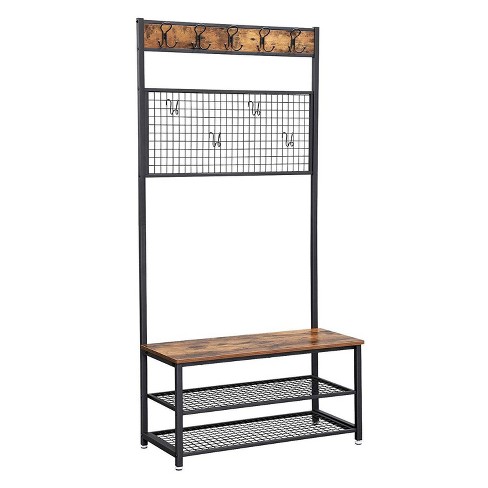 Metal Coat Rack With Wooden Bench Brown And Black Benzara Target