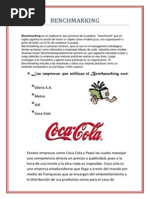 Tiene competidores globales el principal pepsico. Desarrolla 3 ejemplos de benchmarking de dos empresas reales. Benchmarking coca cola vs pepsi cola ensayos de calidad tareas monografias busque mas de 50000 documentos.