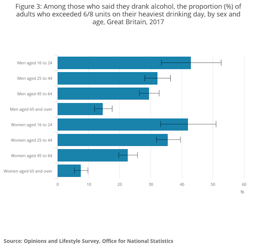 The binge drinking statistics tell us that binge drinking as a whole is on the decline yet it is still very common. Its the habit of binge. 42 of college students report binge drinking.