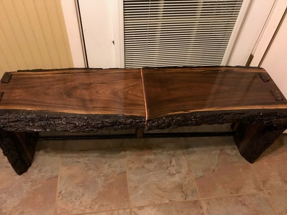 Live Edge Black Walnut Bench Solid Wood With Copper Inlays Etsy