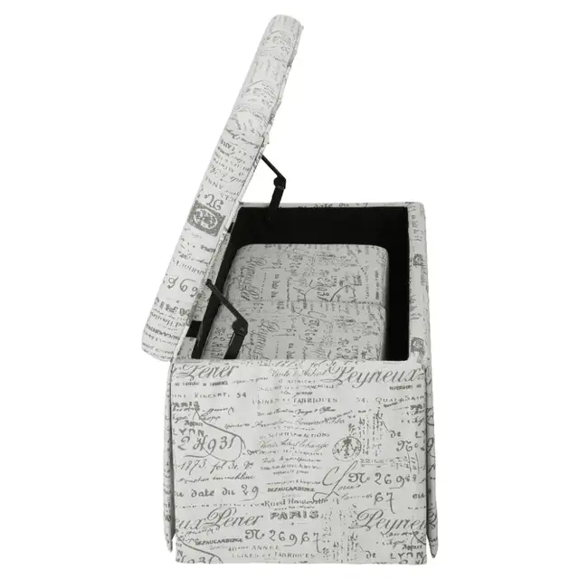 Langria Beige 3 Piece French Script Patterned Fabric Storage Bench
