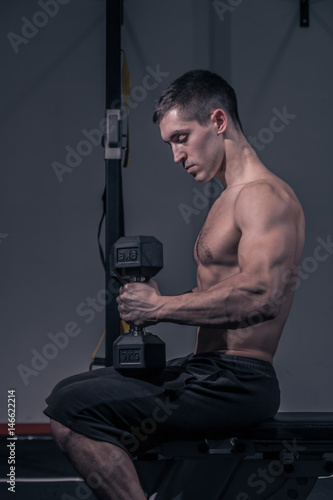 One Young Man Bodybuilder Sitting Flat Bench Dumbbell Buy